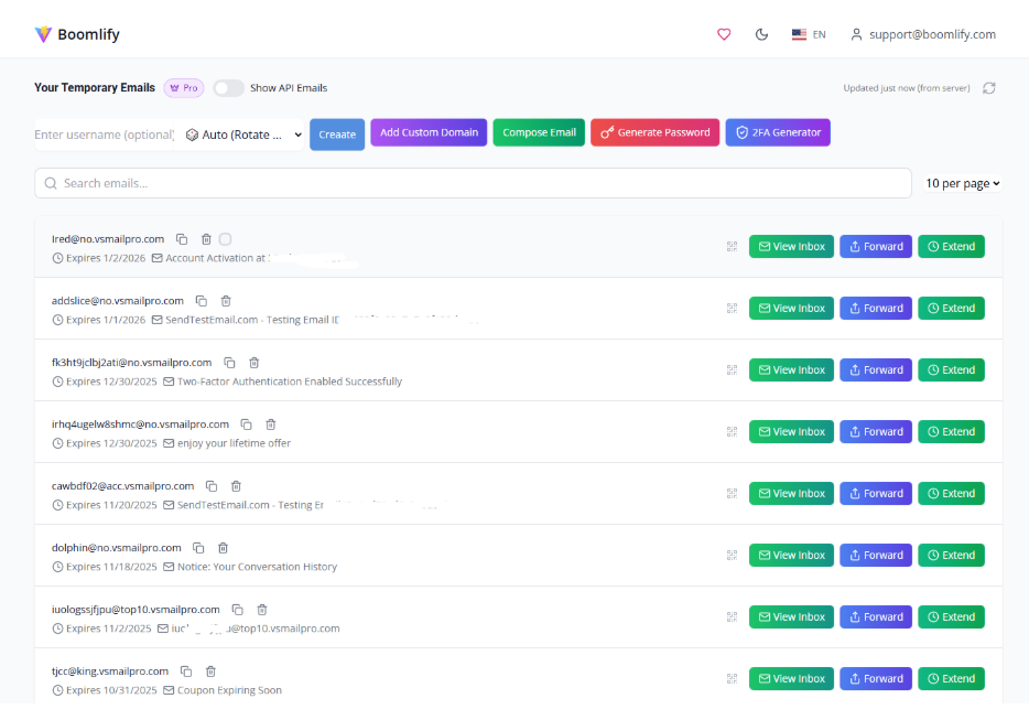 - Custom Domains (BYOD): For the ultimate professional look, you can connect your own private domain. This allows you to generate emails like [email protected] while using Boomlify’s interface to manage the mail. This is 100% undectectable as “temp mail.”